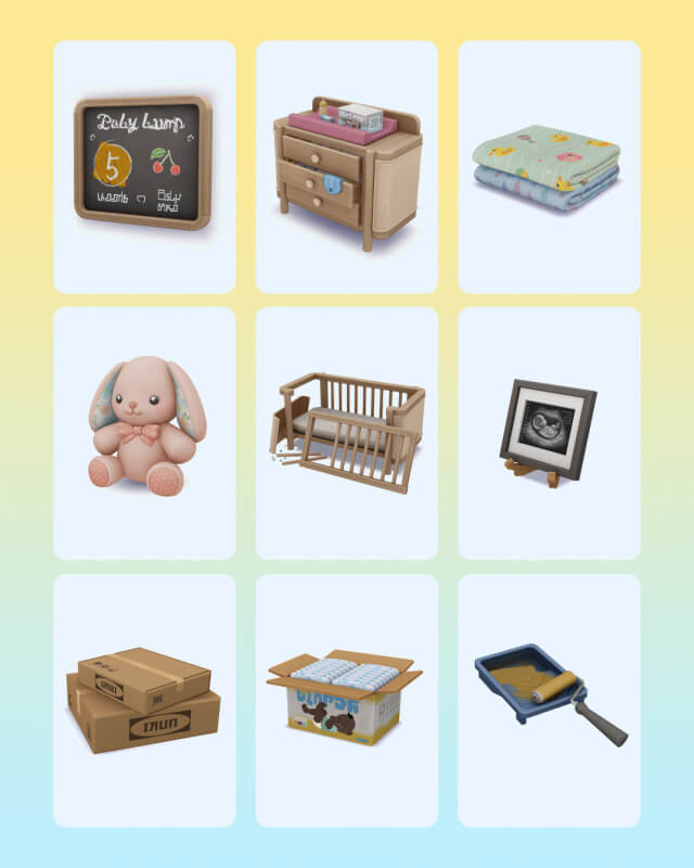 Baby on the Way (Part 1) 🤍 Here’s a preview of some of the items included in Baby on the Way Sims 4 CC Pack. From nursery prep details like paint trays and delivery boxes to cozy essentials like the bunny plush, blankets, and the crib in its assembly stages, this collection captures that special moment before a newborn arrives. It’s all about the in-between phase. The painting, the organizing, the waiting. The room slowly coming together piece by piece.