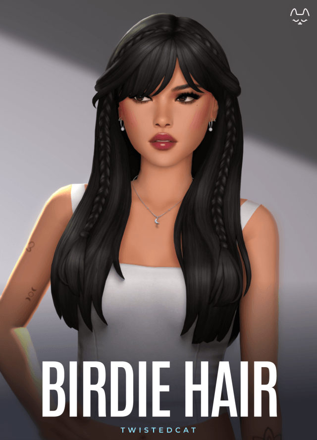 Birdie Hair A long straight hairstyle with bangs and cute braid details! Hope you enjoy 💛✨ 24 default Swatches BGC, F, T-E