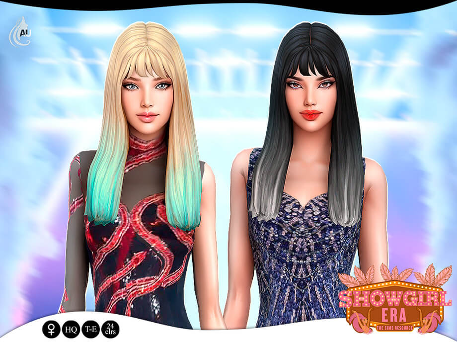 Showgirl Era – Taylr maxis match hairstyle Maxis match straight hair with bangs in a Taylor Swift style Base game compatible Female frame only 24 EA swatches All LODs Hat compatible HQ compatible Smooth weights Custom thumbnail Minor transparent issues